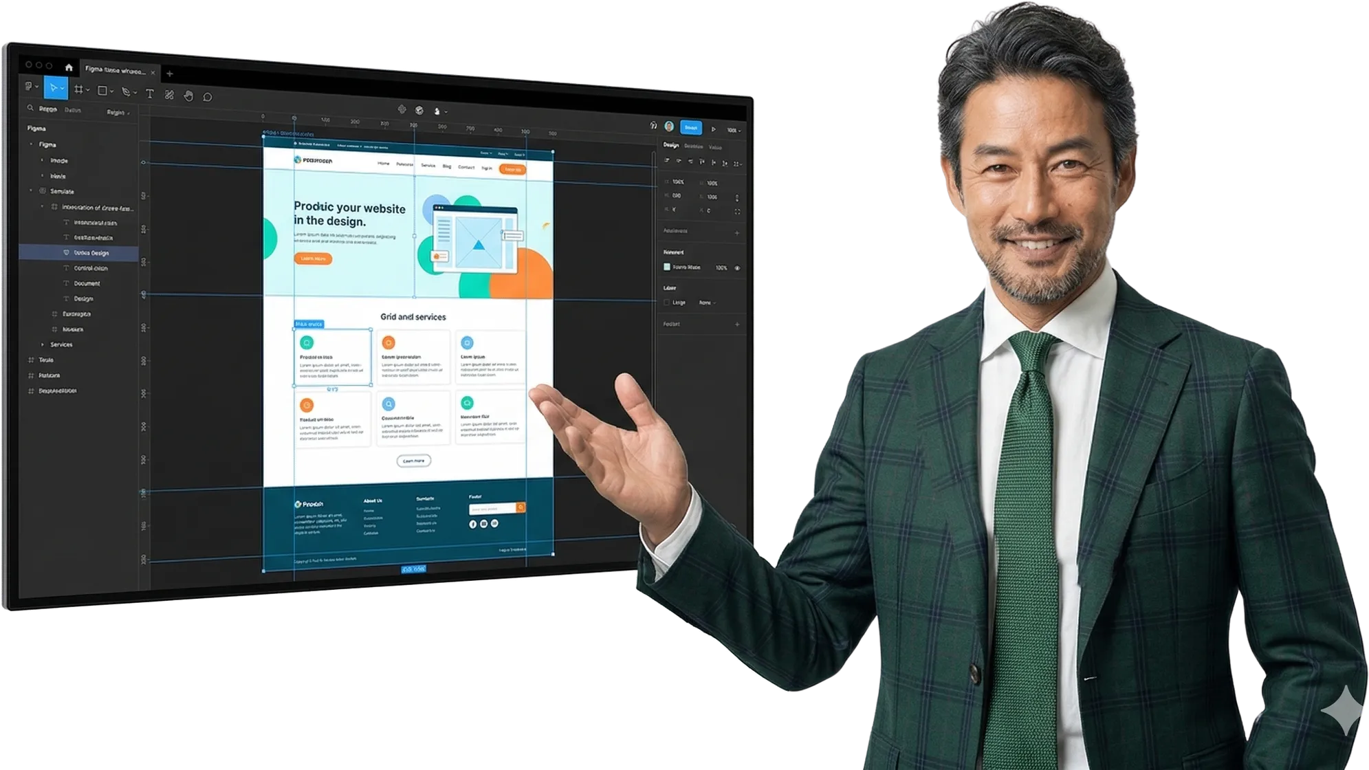 ビジネス目標・ターゲット・競合をヒアリングし、サイトの戦略・コンセプトを策定。サイトマップとワイヤーフレームで全体像を可視化します。